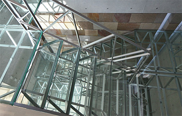 階段鉄骨トラス製作:伸栄工業 ガラス段板製作:前田硝子