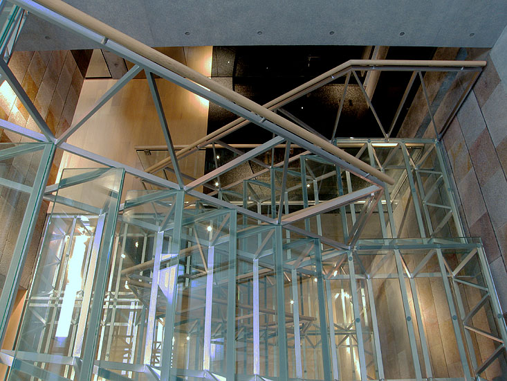 ガラス段板トラス階段。