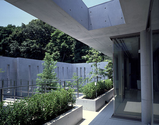 南庭は外壁の延長のRC壁で囲われた2層にわたるコート。