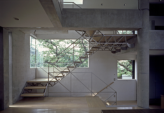 緑の眺めを妨げないトラス階段。