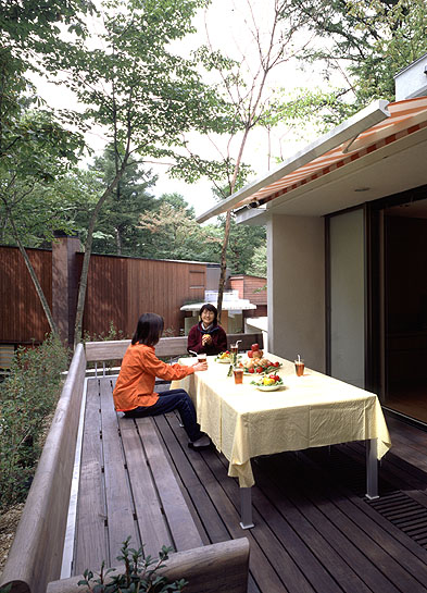 森の空中に浮いた、ダイニングデッキ。