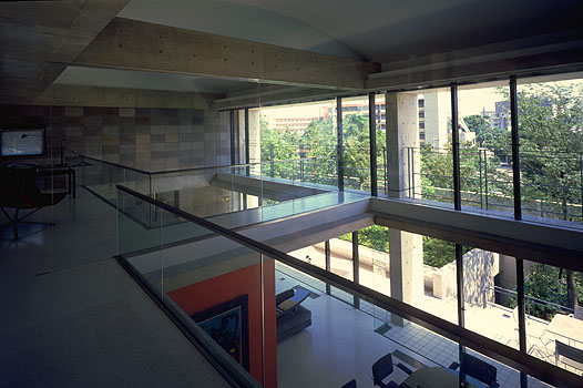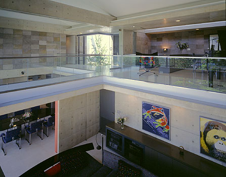 食堂・居間の吹き抜け空間を渡るブリッジより2階バルコニーに出る。