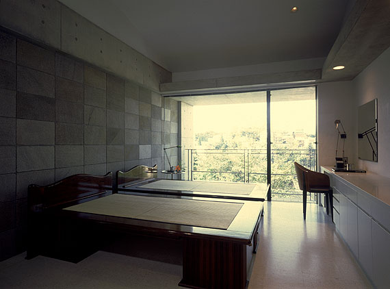 主寝室。ベッドは畳床の特注製作。