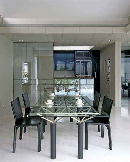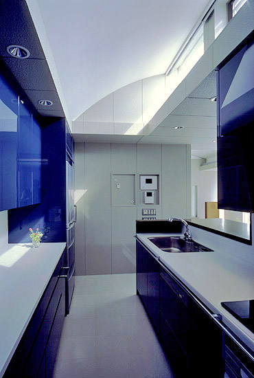 食堂より台所を望む。