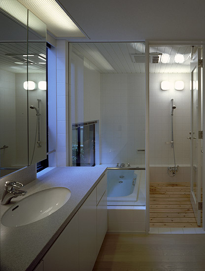 洗面所より浴室を望む。