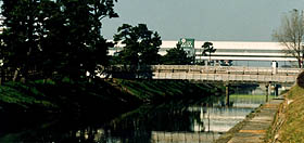 | しかしこんにちの都市や建築 を見渡すと、大きな流れとして、それとは逆に高 速道路や公共建築やビルや共同住宅の姿は均一で のっぺりした線形のものが多く、非線形フラクタ ルの魅力ある世界を踏みにじっているような光景 がいたるところで見受けられる。写真(*8)では ![]() 、私の住まいの近くを流れる川や松並木の親しみ のある風景が、最近できた高速道路のリニヤーな ラインによって断ち切られているのがよくわかる であろう。 さらに私が理解しがたいのは結構な建築家がこの 流れに積極的に加担しているように思えることだ。 それらは、ワンスパンの架構を凝っただけで、出 来上がった建築の輪郭は、高速道路の防音壁のよ うな空港や、ガラスカーテンウオールの巨大な金 魚鉢のようなビルや、デビュー作の自邸をそのま ま大きくしただけの巨大なオモチャのような博物 館・・・とかである。 それらの単調で大仰な形はデザインの手抜き、テ クノロジーの誇示ではないか。不自然で、人間の |