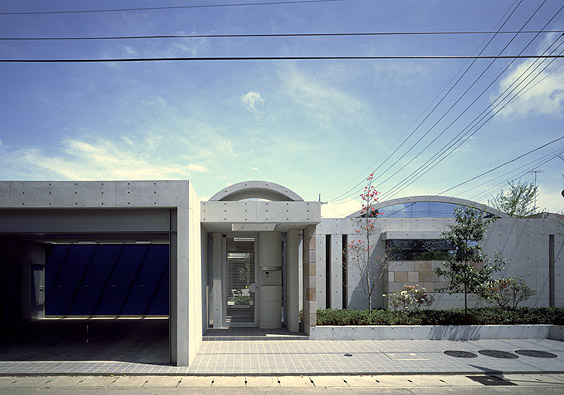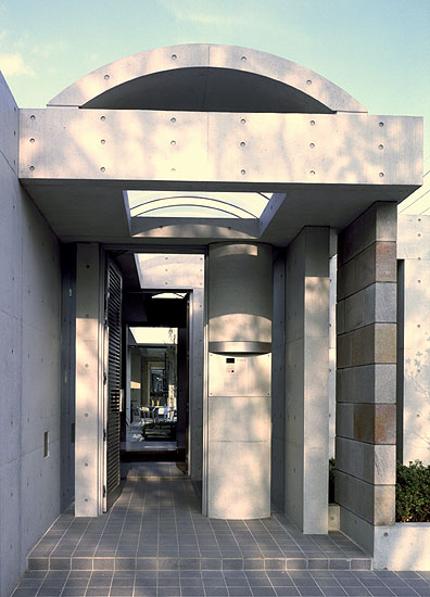 中央はエントランス、門扉、玄関扉、玄関ホールを、ヴォールト屋根を以て