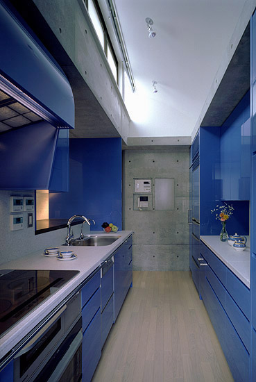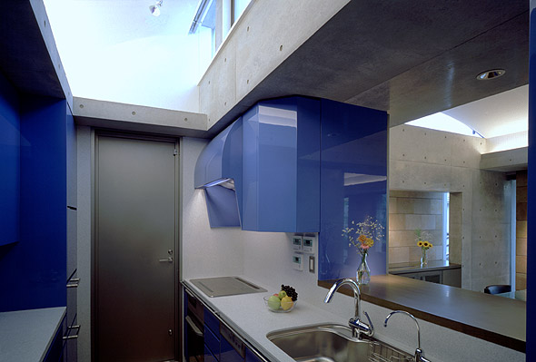 台所突き当たりのシルバープレートは、メモ等が貼り付けられるマグネットボード。