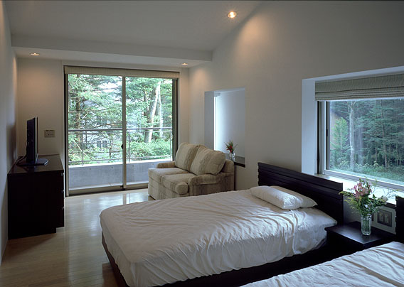 主寝室。枕元の出窓もペアガラス二重サッシ。