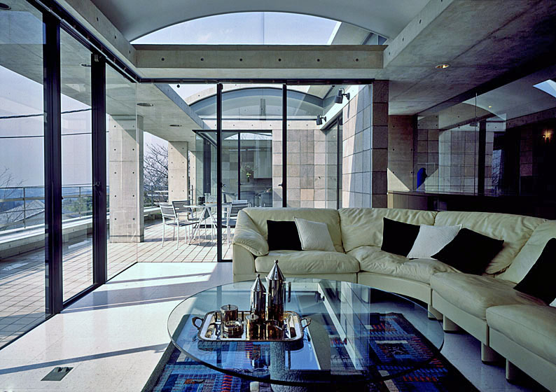 テラス越しに、
