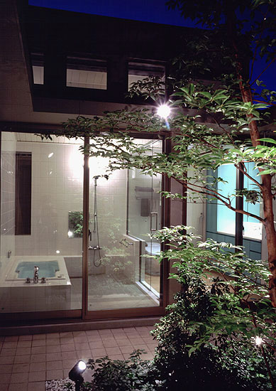 サブコートより、浴室、右手に洗面室を望む。