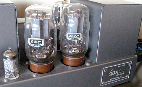 出力管:KT66を差し替えるついでに、その左手にある 小管のドライバー管、その奥の整流管も純正Mullard製に 差し替えた。 正直いって、あまり音の違いはよくわからないが、真空管は 全て純正ということで精神衛生上よろしく、これで迷いなく 音楽にのめり込むことができる・・・と自分に言い聞かせて いる。 |