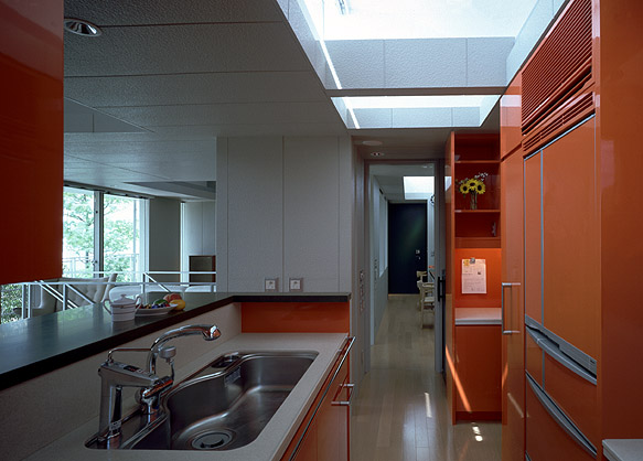 キッチンの色は奥様ご指定色のオレンジ。