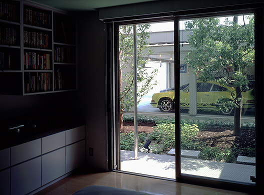 主寝室よりコートを介して、愛車の黄色いポルシェを望むことができる。