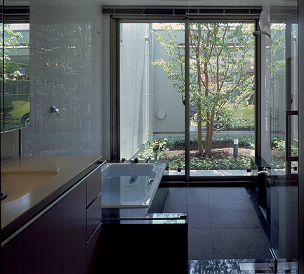 浴室よりコートを介して、愛車の黄色いポルシェを望むことができる。